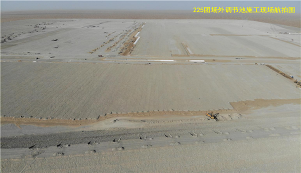 我公司于2020年5月中標(biāo)的兵團第十四師新建225團水利工程場外調(diào)節(jié)池工程為國家重點水利工程,工程等級為Ⅲ等中型水庫,全庫盤、壩坡、壩體均采用土工膜防滲。該項目重要材料標(biāo)段所使用的土工材料數(shù)量約610萬平方米。我公司于2021年11月完成供貨和鋪設(shè)焊接施工